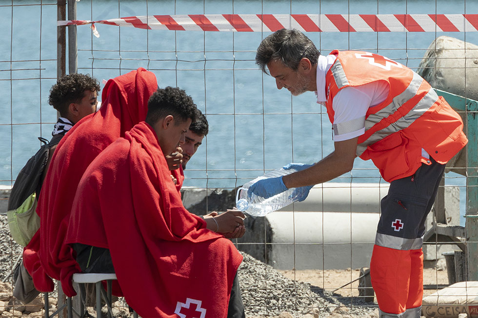Migrantes rescatados este jueves en Lanzarote. Foto: Adriel Perdomo.