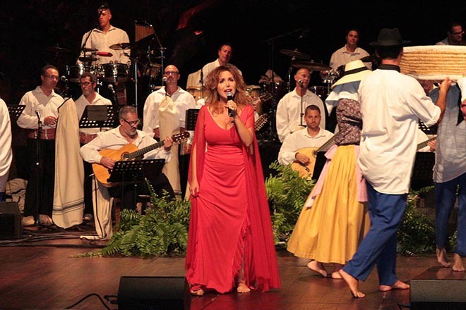 El evento comenzó con la interpretación del Himno de Canarias a cargo del grupo de toque de Los Campesinos, quiénes además participaron en gran parte del espectáculo de los Sabandeños con su grupo de baile.