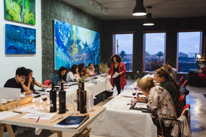 La Semana Malvasía comenzó abriendo boca con la Experiencia Enogastronómica: delicias veganas. El Castillo San José acogió una cita perfecta de maridaje entre cuatro vinos de la Isla y la cocina vegana del restaurante The V Factor. Al día siguiente, se celebró un taller enoartístico con Rufina Santana en su estudio de San Bartolomé, en el que el tinto de Bodegas Rubicón tiñó de color las pinturas de los participantes.