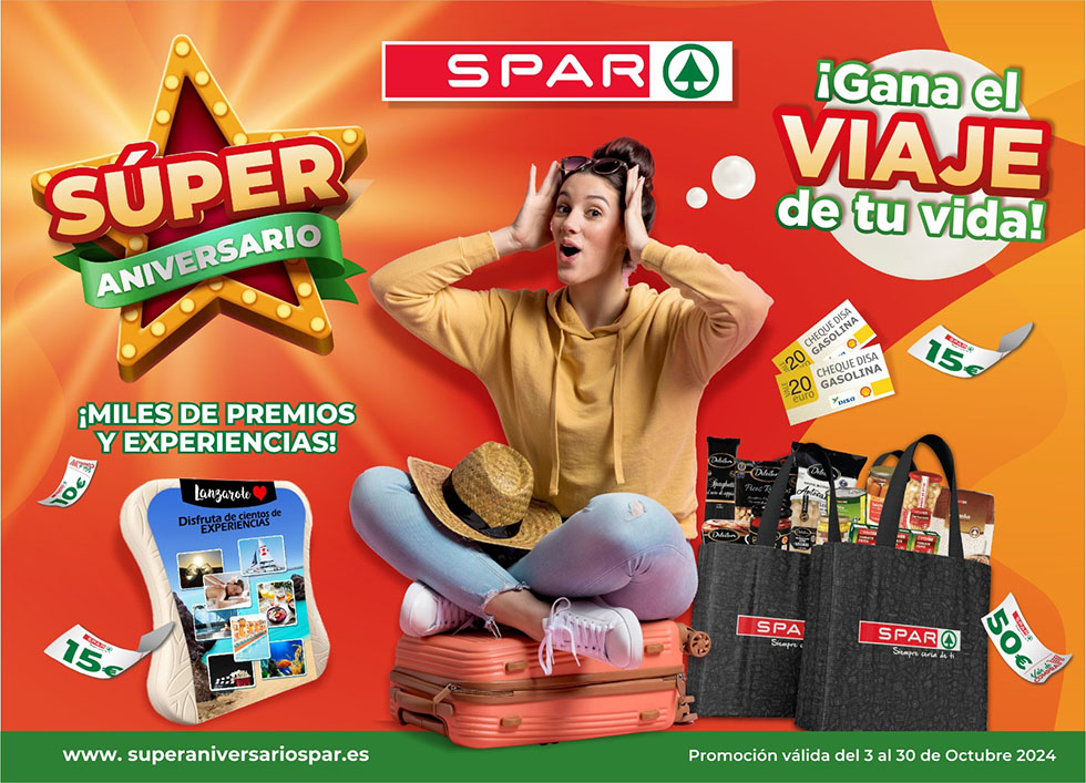 Los supermercados SPAR en Lanzarote están de celebración este mes de octubre con una campaña especial para agradecer la fidelidad de sus clientes. Desde el 3 hasta el 30 de octubre, los clientes que realicen compras superiores a 20 euros en cualquiera de los establecimientos adheridos a la campaña podrán participar en una promoción cargada de premios directos y experiencias inolvidables.