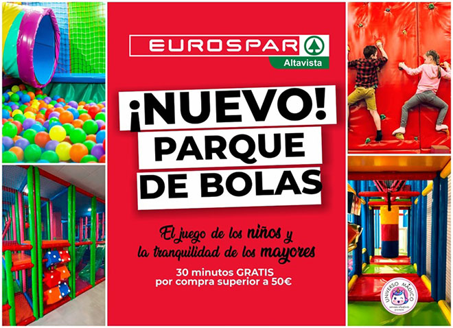 Los clientes de Eurospar Altavista cuentan con un beneficio exclusivo: por compras superiores a 50 euros, tienen derecho a media hora gratis en el parque de bolas.