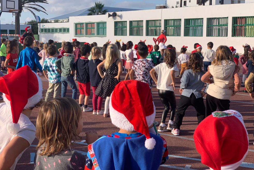 El Ayuntamiento de Tías ha celebrado desde la pasada semana, coordinado con la Fundación Adsis, varias sesiones de baile navideño y zumba en los patios y recintos de los colegios del municipio para fomentar los hábitos de vida saludables dentro de su Estrategia de la Promoción de la Salud y Prevención en el Servicio Nacional de Salud (SNS).