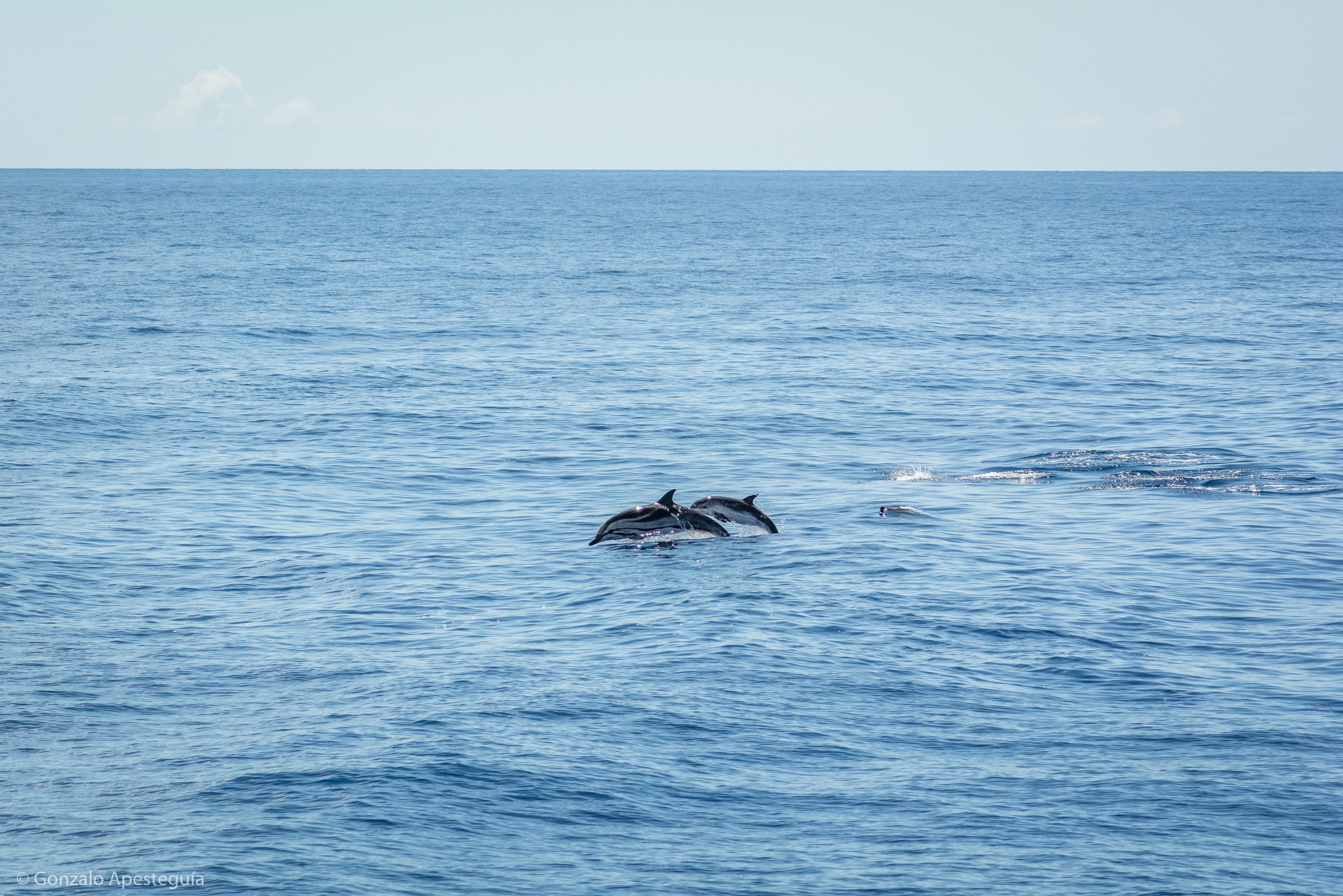 A lo largo del paseo en barco, se pudo avistar un grupo de delfines listados, así como tres zifios de Gervais (una madre, una cría y un juvenil), una especie muy difícil de ver. También se pudieron observar varias aves como pardelas, petreles de Bulwer y un paíño.