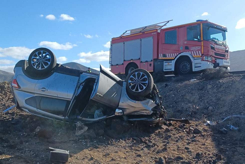Un coche da varias vueltas de campana y queda en posición "de vuelco total" en Lanzarote