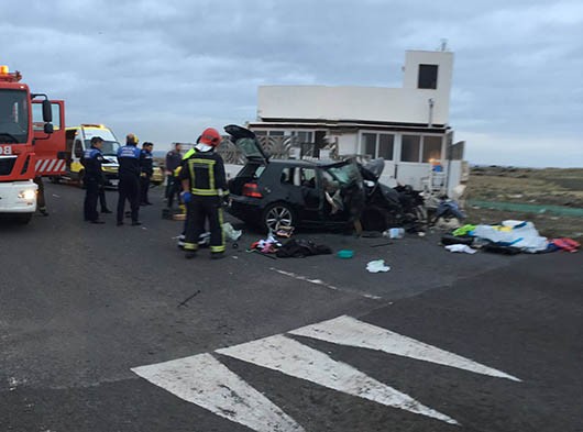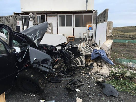 Efectivos del Consorcio de Seguridad, Emergencias, Salvamento, Prevención y Extinción de incendios de la isla de Lanzarote liberaron al único ocupante del vehículo, que se había quedado atrapado. La parte frontal del vehículo quedó convertida en un amasijo de hierro.