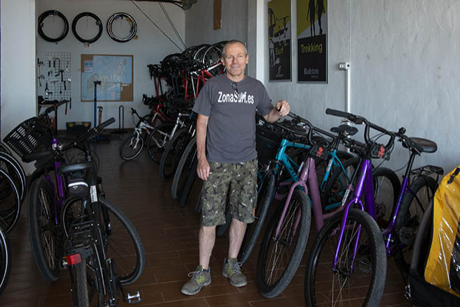 Hay tan poca gente por la calle que Francisco, que limpia las calles de Costa Teguise, dice que antes había colillas por todas partes y ahora las tiene que buscar. Lo que sí encuentra con más frecuencia son guantes y mascarillas tirados. En el paseo de Las Cucharas está cerrada hasta la parafarmacia. Ben ha abierto las puertas de Lanza Active, un negocio de excursiones, alquiler y arreglo de bicicletas. Dice que abre por no quedarse en casa y porque ya ha solucionado algunas averías. Las únicas puertas abiertas son las de algún pub que aprovecha para hacer reformas. Jackie está limpiando el local de fish and chips que no sabe cuándo va a abrir, si en julio o en agosto. Dice que nadie sabe cuándo va a volver el turismo y que en Reino Unido las cosas no están nada bien.