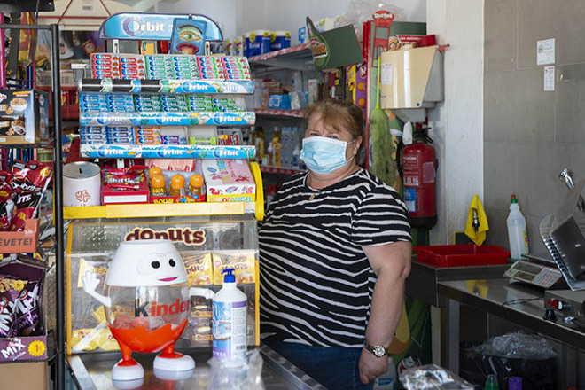 También en la Farmacia La Peñita, que no ha cerrado durante el confinamiento se ha notado la ausencia de turistas. “Pues viendo cómo esta la avenida, imagínate”, dice Josaín. En Playa Blanca tampoco cerró en ningún momento Mióptica, la única que hay en el pueblo, en la calle El Correíllo. Y también ha bajado el negocio, dice Daniel, y no sólo por el turismo sino porque muchos clientes, la mayoría, son trabajadores del sector turístico que están sin trabajo. Otro establecimiento que no llegó a cerrar es el supermercado Ruth, también en Playa Blanca. Rosa, una de sus empleadas, dice que antes cerraban más tarde porque iban a comprar casi de madrugada los camareros. Ahora cierran a las 23:30 “y la cosa está más bien floja”.