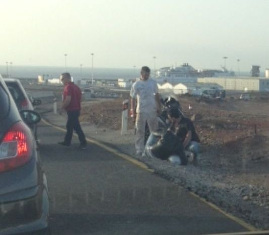 Un hombre de unos 41 años de edad resultó herido al caerse en su moto mientras circulaba por la circunvalación de Arrecife, en las inmediaciones del muelle de Los Mármoles.