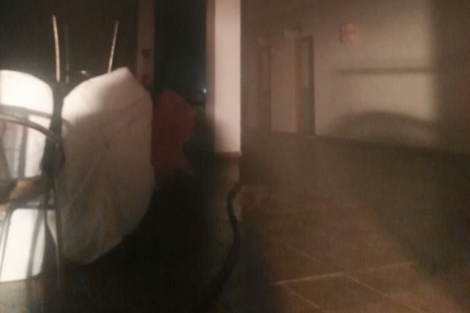 Una vez extinguido el incendio, los efectivos del Consorcio de Seguridad y Emergencias procedieron a ventilar el local, que se vio totalmente ocupado por el humo.