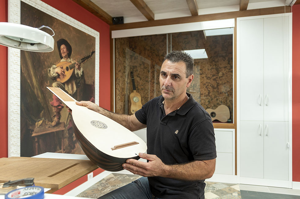 Paco Dorta era carpintero y se ha convertido en el único luthier de Canarias especializado en instrumentos antiguos de cuerda pulsada