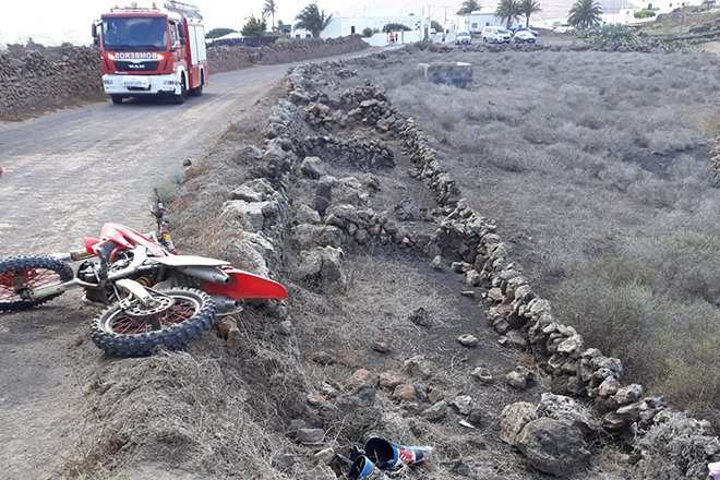 Un motorista resulta herido grave tras sufrir una caída en Tiagua