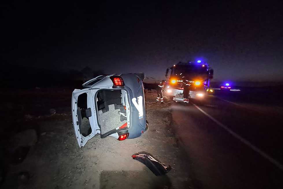 Los bomberos colocaron el vehículo, que se encontraba en posición de vuelco lateral, sobre las cuatro ruedas en un lugar seguro.