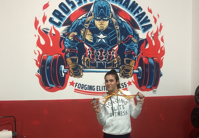 Así llegó al Campeonato de España, una parada que no estaba en su camino un mes antes, pero que quería aprovechar. “Estaba muy nerviosa”, nos cuenta. “Era la segunda vez que competía y me sorprendió que la gente iba muy concentrada y en el momento de competir vi que había mucho nivel en mi categoría, menos de 58 kilos, e intenté hacerlo lo mejor posible”, y lo consiguió. Nuevamente en Madrid conseguía levantar 50 kilos en arrancada y 64 kilos en dos tiempos, para sumar un total de 114 kilos y 52,05 puntos, lo que le permitió ser subcampeona de España sub´15 en arrancada dos tiempos con sólo dos meses de carrera deportiva.