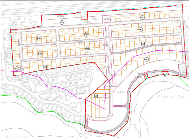 Parcelario de la urbanización, entre la autovía LZ-2 y la playa del Cable.