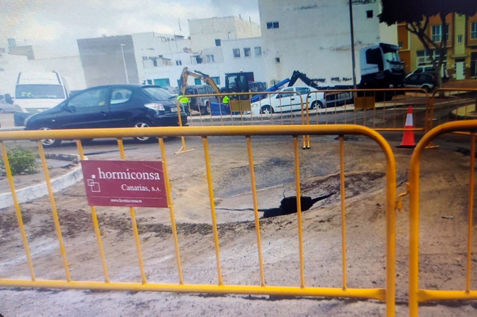 Así, el hundimiento de la calzada ha afectado al punto de intersección entre las calles Tajaraste y Campoamor, a pocos metros del CEIP Argana.