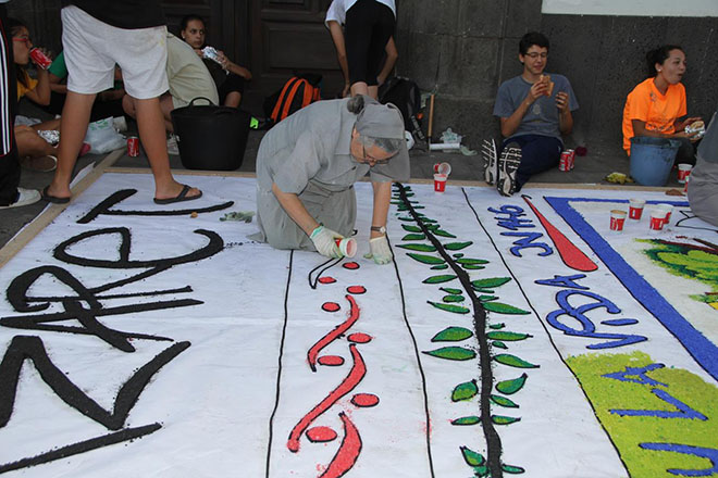 La Concejalía de Cultura del Ayuntamiento de Arrecife organiza el próximo sábado día 6 de junio la tradicional confección de alfombras de sal marina coloreada, para conmemorar la festividad religiosa del Corpus Christi.