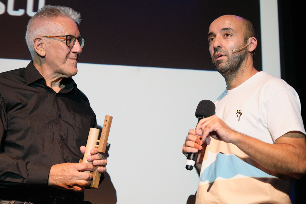 Carrasco recogió el premio de manos de sus nietos, Roque y Kalea, y explicó "cómo te puede cambiar la vida según dónde estés o con las personas que te encuentras". Llegó a la isla en los años ochenta, pero cuando vivía en Madrid y trabajaba de camarero solía ir a la sede de la Agencia EFE, donde trabajaba otro amigo camarero. "Me gustaba irme allí, a acompañarle y ver el movimiento de fotógrafos, de periodistas, gente que entraba a la cafetería con sus cámaras y ese ambiente", explicó.