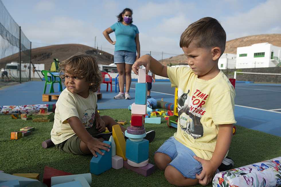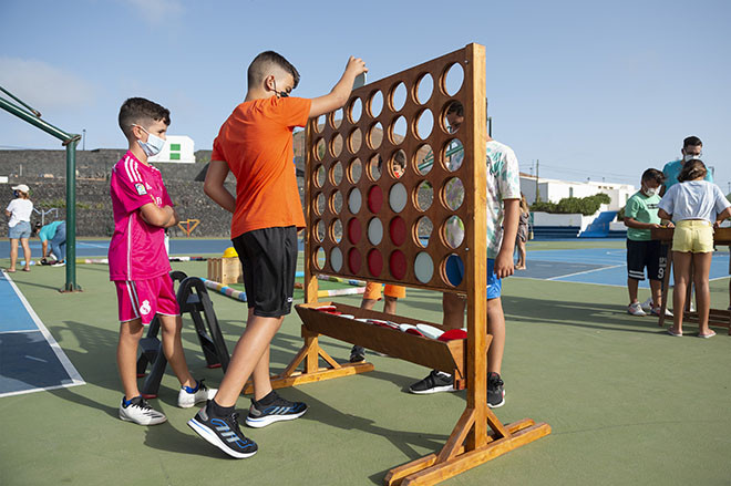 Aurora Lanzarote tiene un sinfín de juegos creativos que despiertan muchas habilidades. Desde los zancos, jenga, tangram, cuatro en raya, tablas de equilibro entre muchos otros. “Se crea un espacio intergeneracional donde tanto mayores como niños, puedan conectar con lo tradicional”, señala.