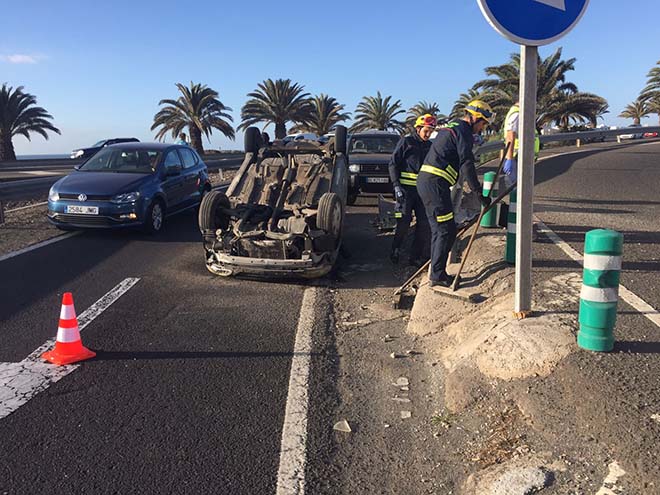 Un vehículo volcó este lunes por la mañana en el enlace entre la Circunvalación de Arrecife y la autovía, según informó el Consorcio de Seguridad y Emergencias de Lanzarote.