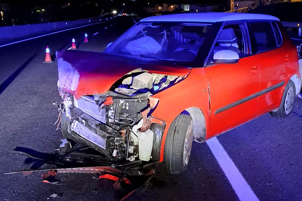El automóvil se quedó en medio de la vía y tuvo que ser retirado por una grúa, mientras que los bomberos procedieron a la limpieza de la calzada de trozos de plásticos, cristales y de un derrame.