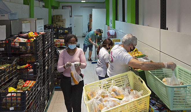 El fin de los contratos turísticos y la sexta ola del Covid obliga a los colectivos más vulnerables a acudir nuevamente al reparto de comida para alimentar a sus familias