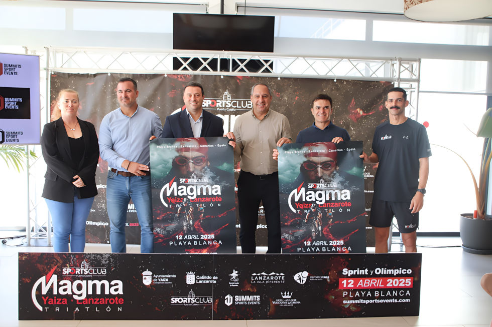 El municipio de Yaiza da la bienvenida al Magma Yaiza - Lanzarote Triatlón que se estrenará en la Isla de los Volcanes el sábado 12 de abril abierto a la participación de 400 participantes en las categorías sprint y olímpica y epicentro en la localidad turística de Playa Blanca, así lo confirmaron representantes del Ayuntamiento de Yaiza, en cabeza de su alcalde Óscar Noda, que lidera la organización junto al Cabildo de Lanzarote y Sports Club Puerto Calero, entidades comprometidas con este evento deportivo "que impactará en la promoción turística de nuestro municipio y en la economía local sin colmatar el calendario deportivo insular", según destacó Óscar Noda este lunes en el acto de presentación de la prueba celebrado en las instalaciones del complejo Sports Club Puerto Calero.