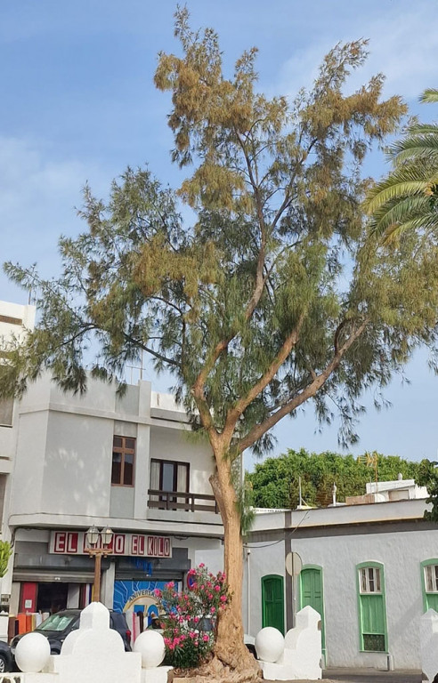 La Casuarina de Toru Dutt se lamenta con un murmullo fúnebre. La casuarina de mi niñez, el árbol de la niñez de las personas nacidas en Arrecife, tiene los días contados. ¡Mírenla, mírenla! Retengamos en nuestra retina y memoria al árbol que lleva décadas siendo testigo de bodas, bautizos y entierros, de llantos y risas, de niñas corriendo con zapatos blancos, porque pronto veremos a sus viejas ramas llorar la savia que lo nutre. A sus pies no estarán las alfombras de sal, sino las bandejas para escombros que lo llevarán al vertedero.
