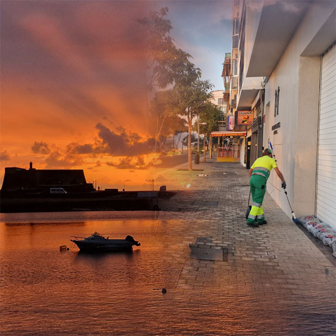Pero más allá de toda esta indolencia, hay muchas personas que cuidan nuestra capital. N. barre Arrecife; es delgada, rubia y tiene los ojos azules como el mar más limpio. Pasaría desapercibida si no fuera porque, escobillón en mano, hábil y amable, de repente nos mira. Y con una amplia y bella sonrisa, da los buenos días. N. es de ese tipo de personas que alegran la mañana e iluminan el día sin contaminar.
